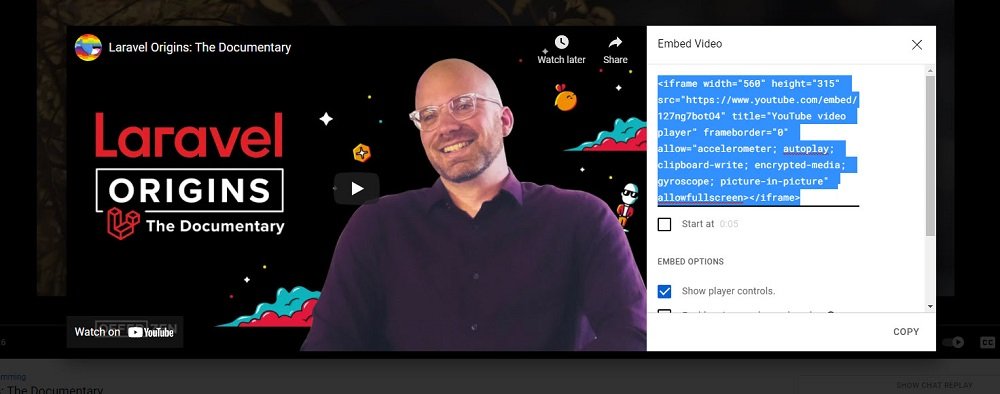 A new tab will open, then select embed and copy embed code in opened modal.