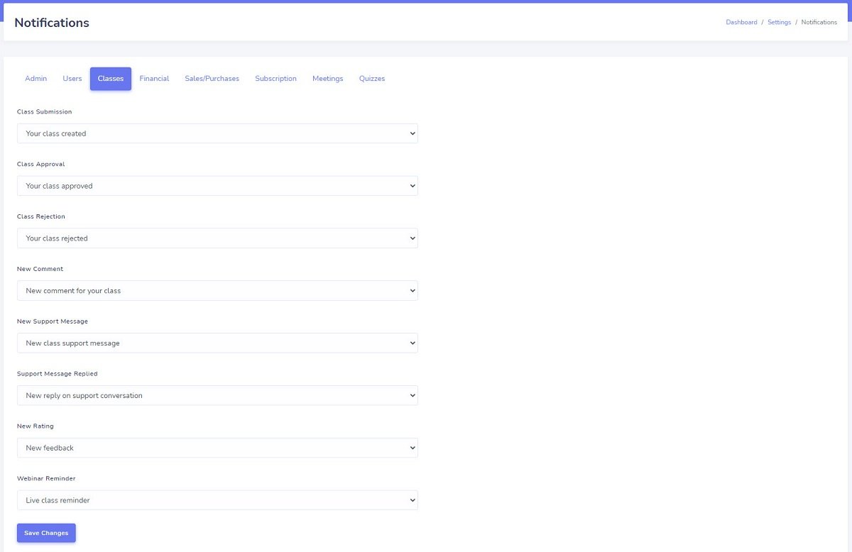 CoursesOK supports personalized notification templates. You can define customized notification templates and assign them to a related process so the system will send the notification automatically when a process is done. For example, when an instructor receives a new support ticket, will receive a notification.